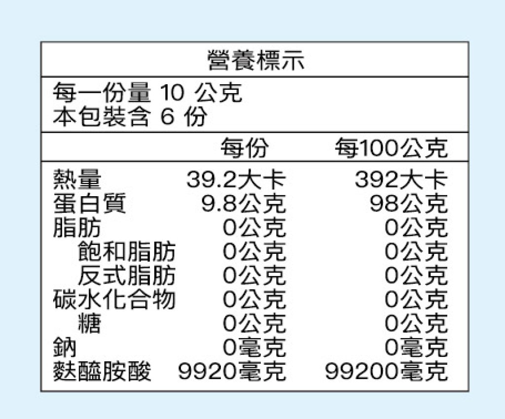 ※主要成分:左旋麩醯胺酸99.2%、麥芽糊精0.8%