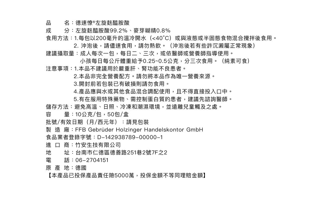 ♦左旋麩醯胺酸原料來自德國大廠FFB製造